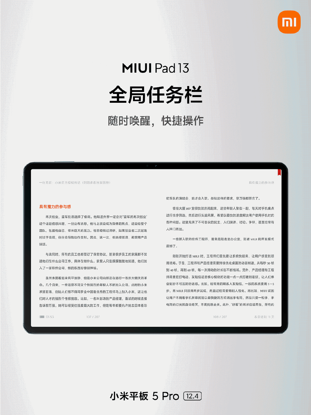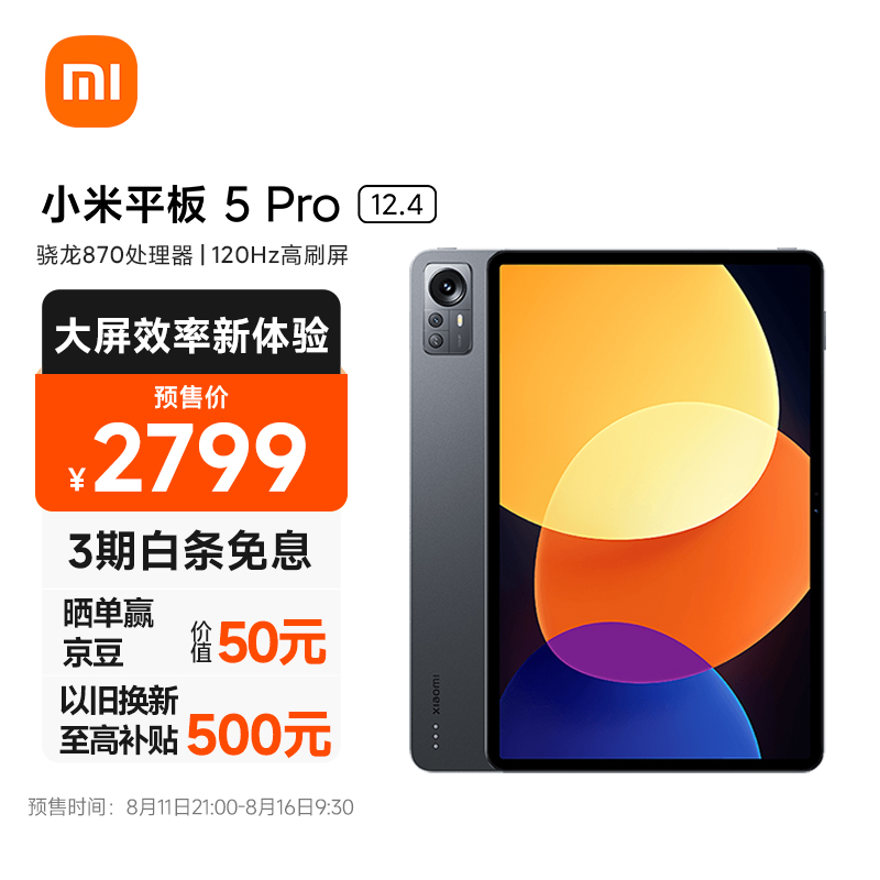 8 月 11 日消息,小米今天推出了小米平板 5Pro 12。4 系列,定价 2799 元起。