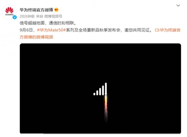 预热视频中播放了“信号格图标最后一格变成了火箭,飞出地球,解体运载上天”的画面内容,华为还在公屏中打出了“信号超越地面、通信时刻相连、突破限制的信号、难以置信,Mate相信”的标签,坐实了Mate 50系列搭载通讯技术。