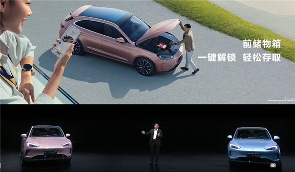 此外,由于取消了增程器,AITO问界M5 EV还提供了一个80升的前备箱,支持单独远程开启,而且具备防水功能,如此可以将车子暂时变身成为快递储存箱。