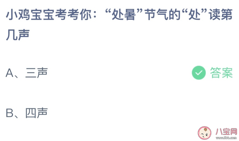 原标题:处暑的处读三声还是四声 蚂蚁庄园处暑节气的处读第几声8。23答案
