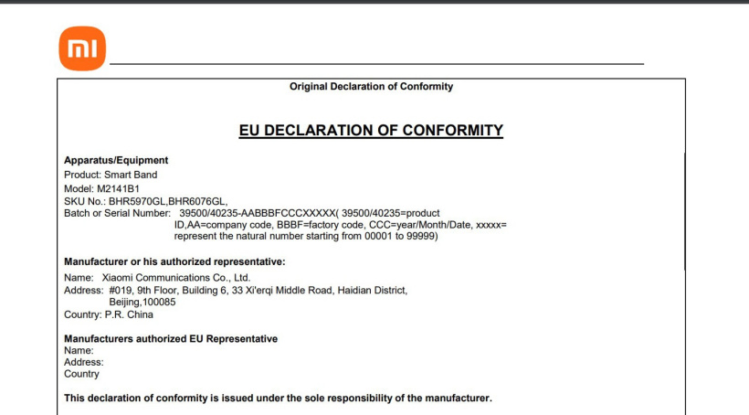 小米智能手环 7 Pro 欧洲的变体型号为 M2141B1。目前,尚不清楚此版本是否会对其规格进行更改。