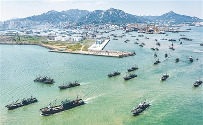 9月1日,山东省荣成市石岛渔港,渔民们驾驶渔船出海捕鱼。