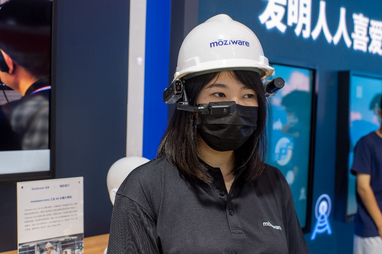 工作人员正在展示工业AR头戴计算机。人民网记者 翁奇羽摄