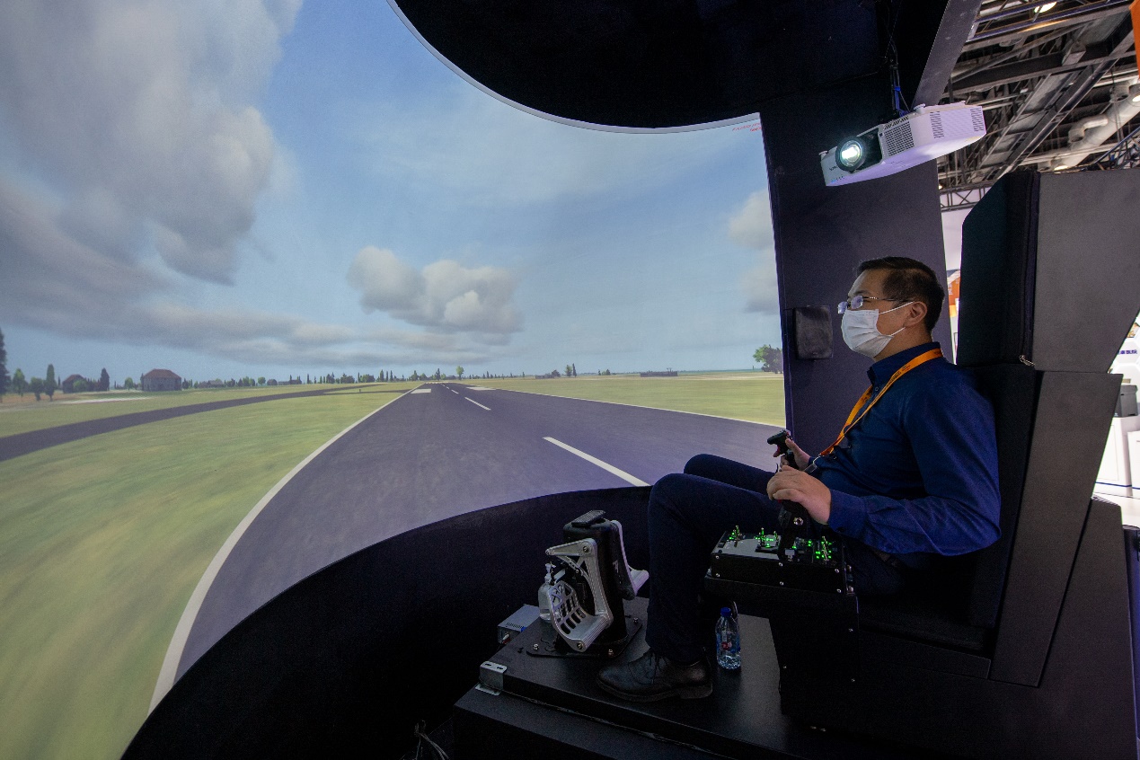 在国家会议中心综合展区的爱普生展台,参观者正在沉浸式体验模拟飞行。人民网记者 翁奇羽摄