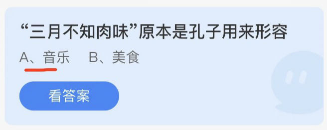 三月不知肉味原本是孔子用来形容?这是支付宝蚂蚁庄园小课堂公布的9月2日问题,答对即可获得一份180g饲料,那么接下来就让我们一起了解一下蚂蚁庄园早知道答案9月2日吧!
