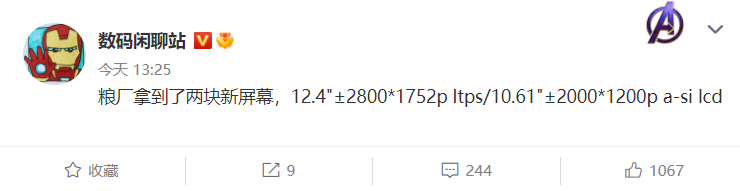 现在该博主表示,小米已经拿货两块新屏幕,其中一款是 12。4 英寸 LTPS(低温多晶硅) LCD 屏幕,屏幕分辨率为 2800 x 1752p,另一款是 10。61 英寸 a-Si(非晶硅液晶显示屏) LCD 屏幕。其中前一款预计用于小米平板 6 系列,后一款预计用于 Redmi 入门级平板电脑(预计搭载联发科迅鲲处理器)。