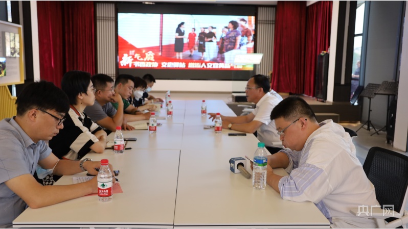 记者们聆听县政协主席介绍“书香政协 文史驿站”相关情况(央广网记者 邓玉玲 摄)